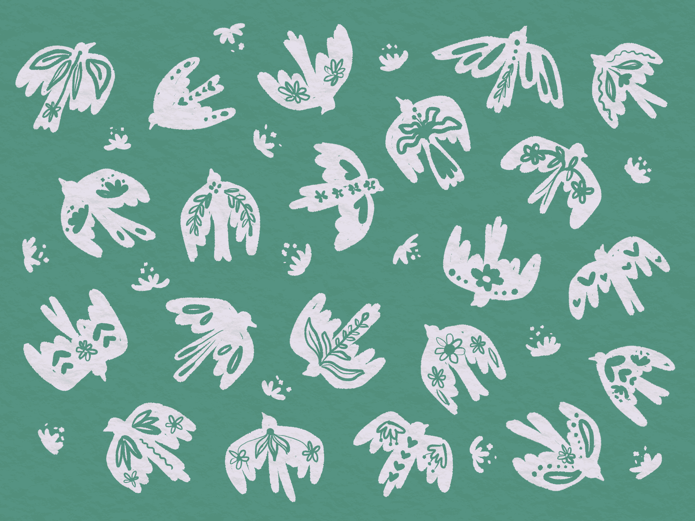 Exploración de patrones a partir de elementos ilustrados, enfocada en ritmo, repetición y composición.