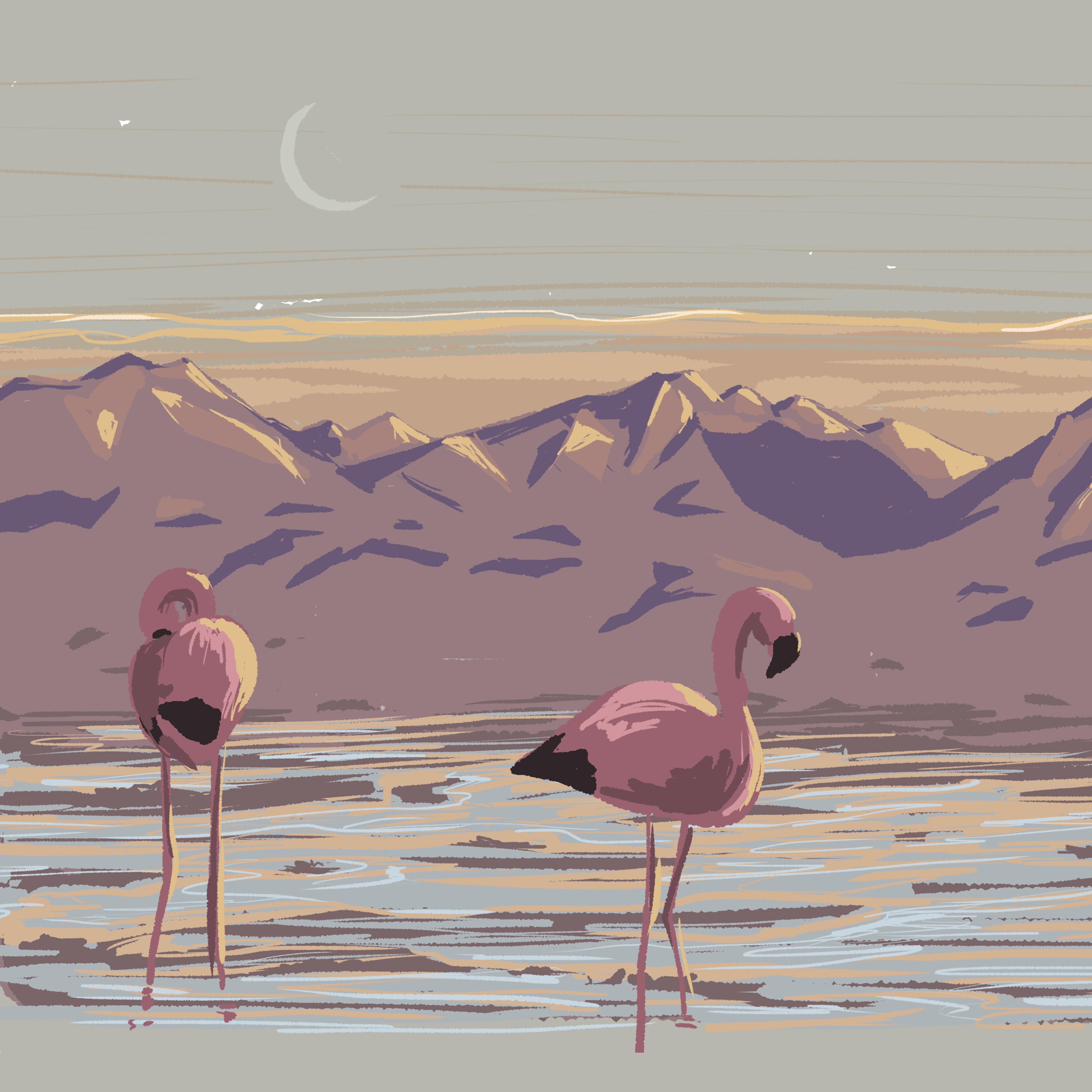 Serie de ilustraciones inspiradas en tres paisajes del territorio chileno: cordillera, desierto y costa.
